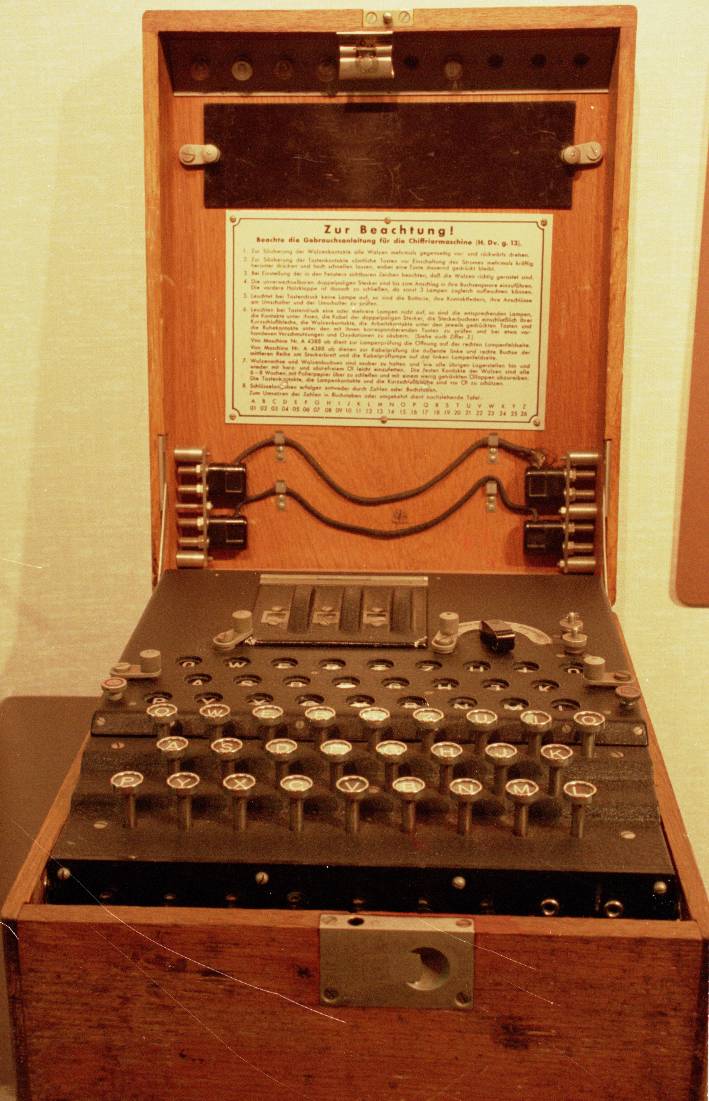 Three Enigma machine during the war, the front. JPEG, 1090x746